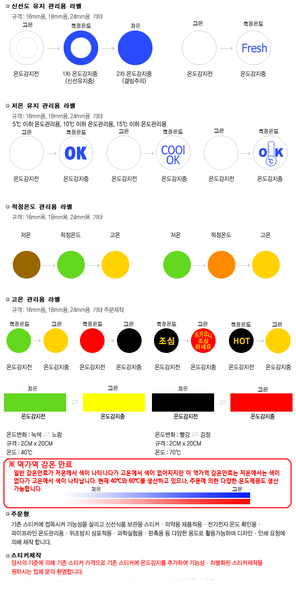 없으나 설정온도 이상이 되면 색이 나타나는 역가역 제품, 그리고 한번 온도에 반응하여 색이 변한 후 다시 본래의 상테로 돌아오지 않는바가